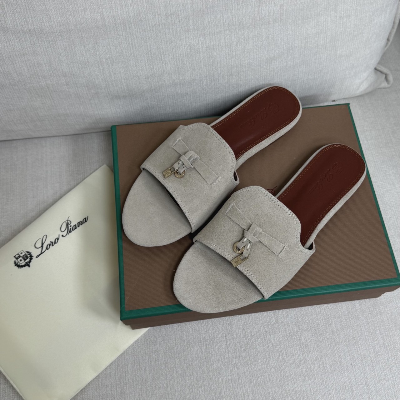 로로피아나 썸머 참스 스웨이드 샌들 뮬 슬리퍼