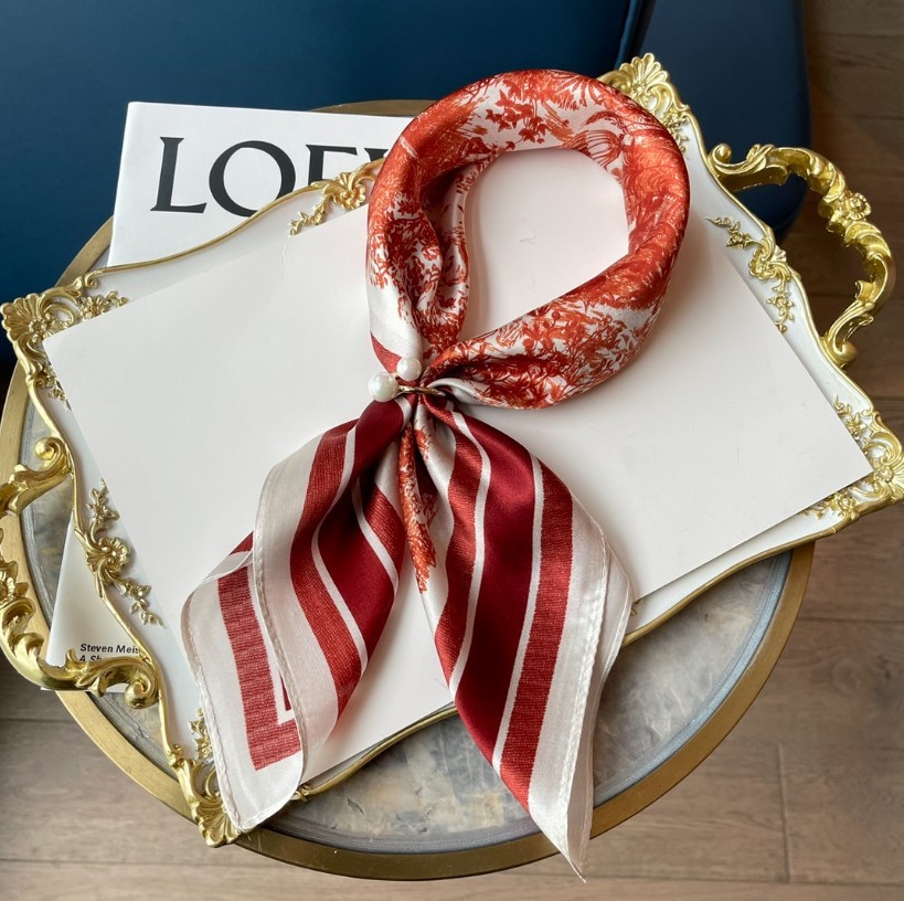 샤넬 체스 패턴 실크스카프