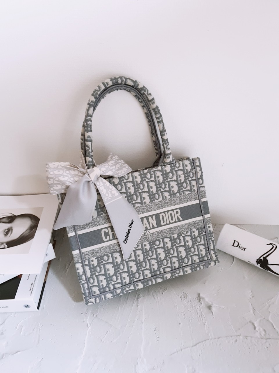 디올 오블리크 + 쁘띠스카프 북토트 백 스몰(그레이, 네이비)